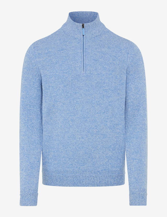 Este suéter tipo Troyer en el estilo Steffen es un clásico moderno con un toque deportivo. Su silueta recta y cómoda ofrece un ajuste relajado, mientras que el característico cuello Troyer con cremallera corta aporta funcionalidad y un detalle distintivo.