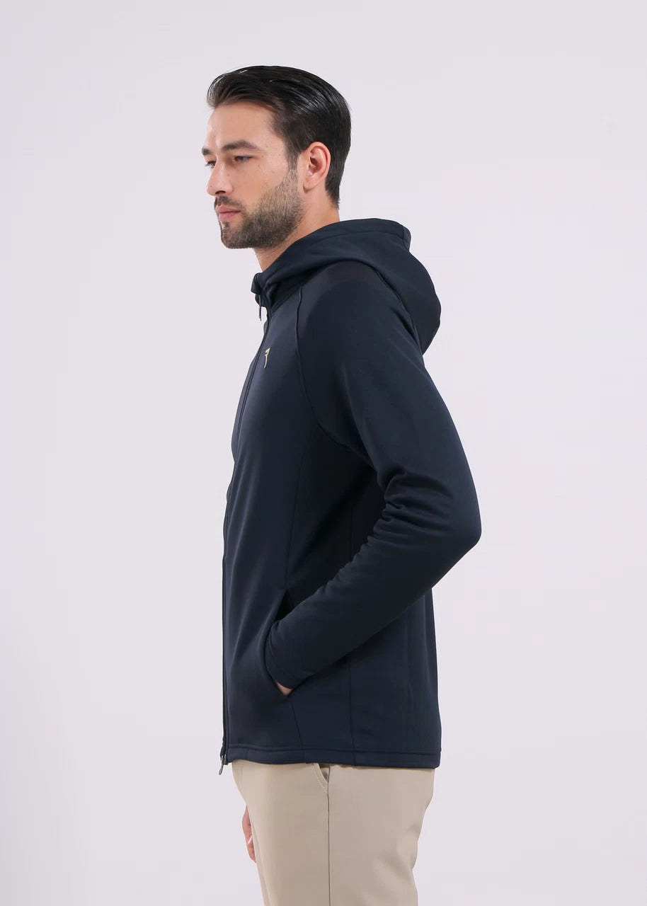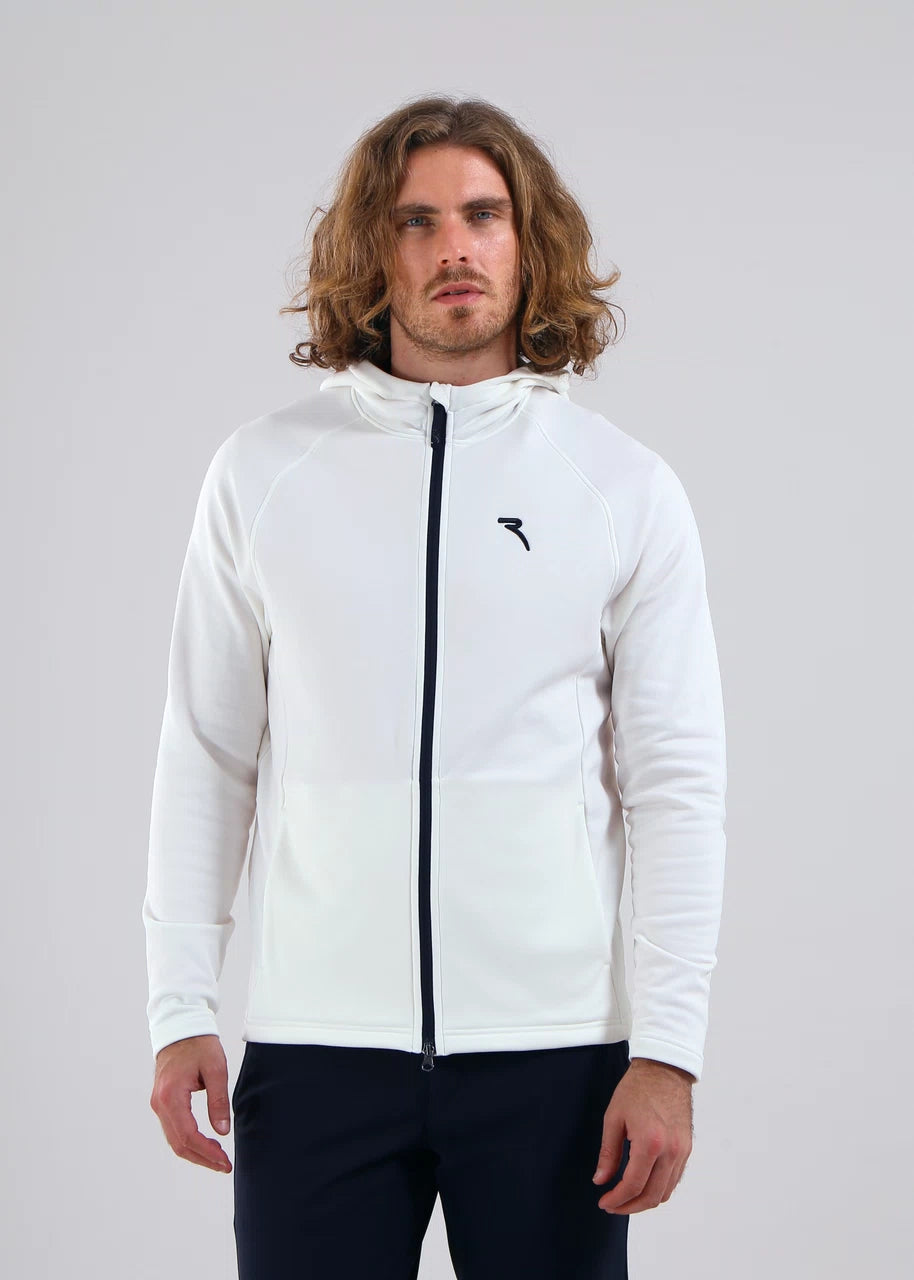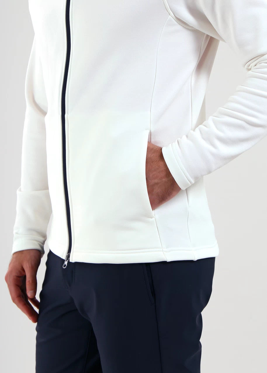 Pandan es una sudadera con capucha y cremallera completa, confeccionada en forro polar elástico liso con interior cepillado y tecnología Pro-Therm para un aislamiento térmico eficaz. Diseñada para el confort y la libertad de movimiento, cuenta con un corte esencial y bolsillos laterales prácticos: ideal para vestirse por capas en climas fríos.