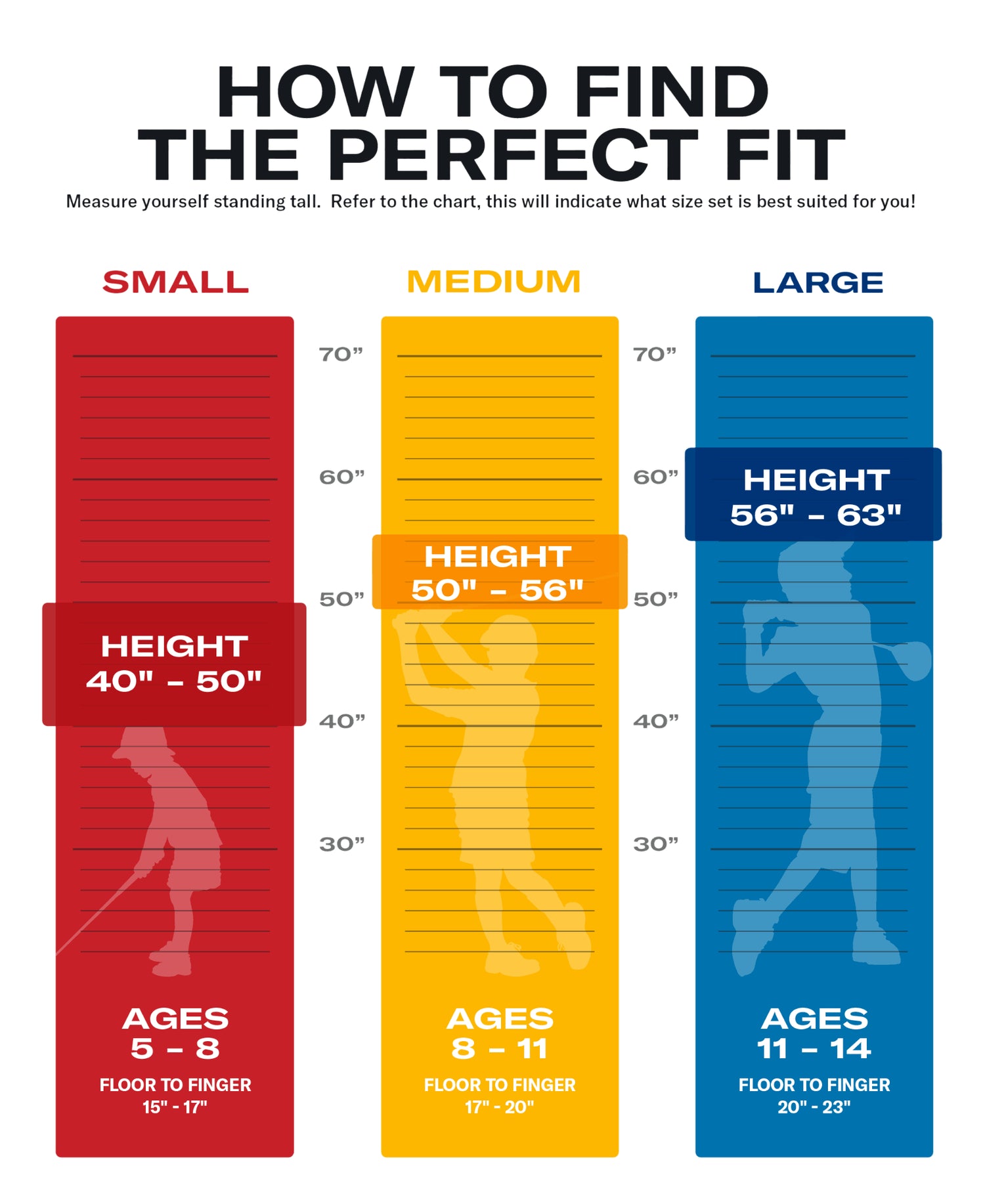 Diseño adaptado a la edad: Cada set está diseñado para un rango de edad y estatura específico, asegurando que los palos sean del tamaño y peso adecuados para el joven golfista.