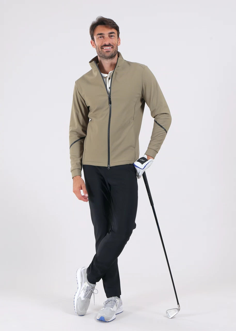 Macro es una chaqueta elástica Pro-Therm de tejido softshell de 3 capas con tacto superior, cortavientos y repelente al agua, diseñada para ofrecer aislamiento térmico. El interior afelpado proporciona calidez y comodidad, mientras que la cremallera frontal completa y la estructura elástica garantizan total libertad de movimiento. La cremallera de doble dirección, los insertos elásticos en puños, y los bolsillos laterales con cremallera aportan funcionalidad y versatilidad. La cinta Monogram a lo largo de la cremallera invertida y en las mangas añade un acento gráfico refinado a su diseño deportivo y minimalista, ideal dentro y fuera del campo.