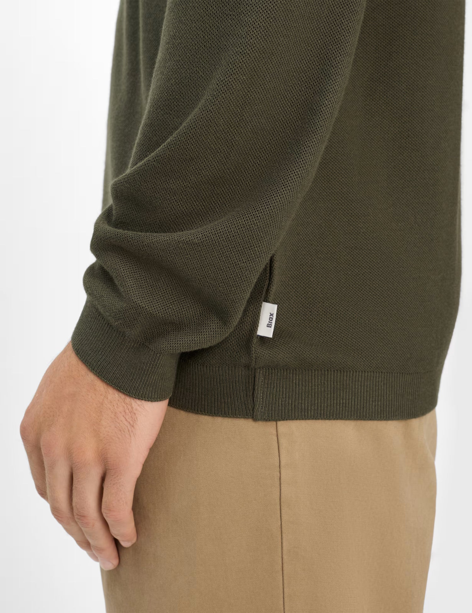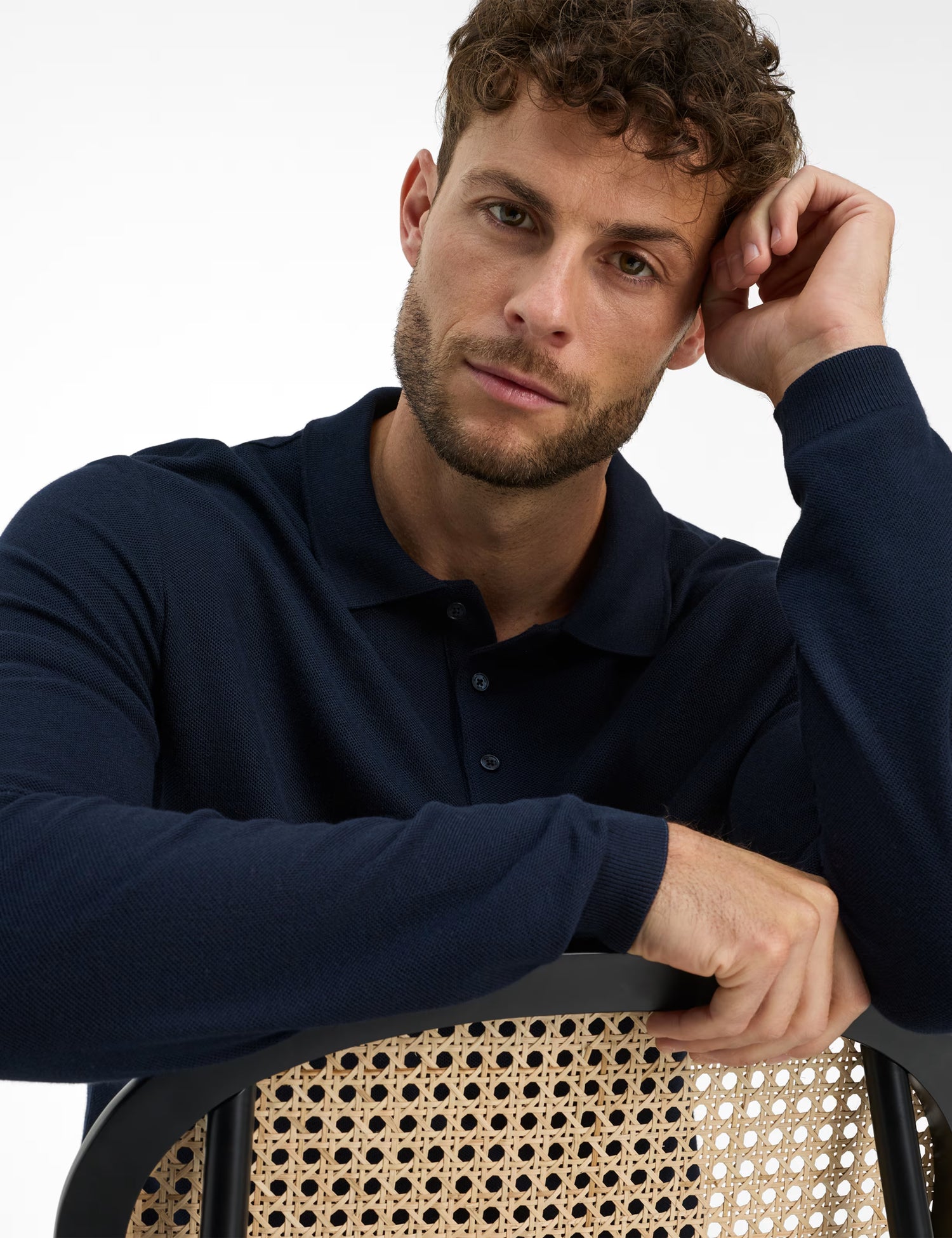 Palabras clave: polo BRAX, jersey de punto, mezcla de algodón y modal, polo otoño invierno, estilo sport-chic, moda golf.
