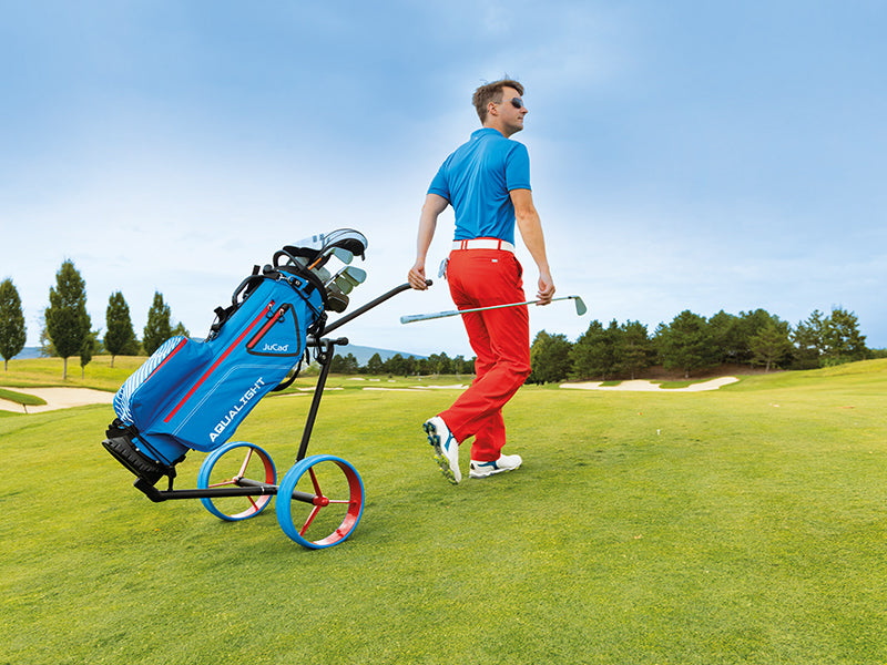 El estable carro de carbono negro mate en diseño 3K impresiona por su extrema ligereza y no tiene límite de peso. Adecuado para bolsas pesadas, puede empujarse o tirarse de él sin forzar la espalda gracias al manillar con altura ajustable. El carro cabe en la funda de viaje junto con la bolsa de golf y es el compañero de vuelo ideal.