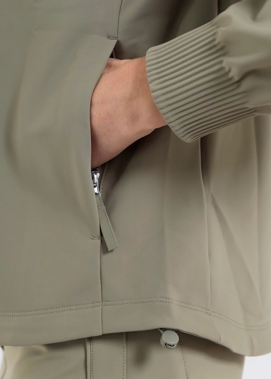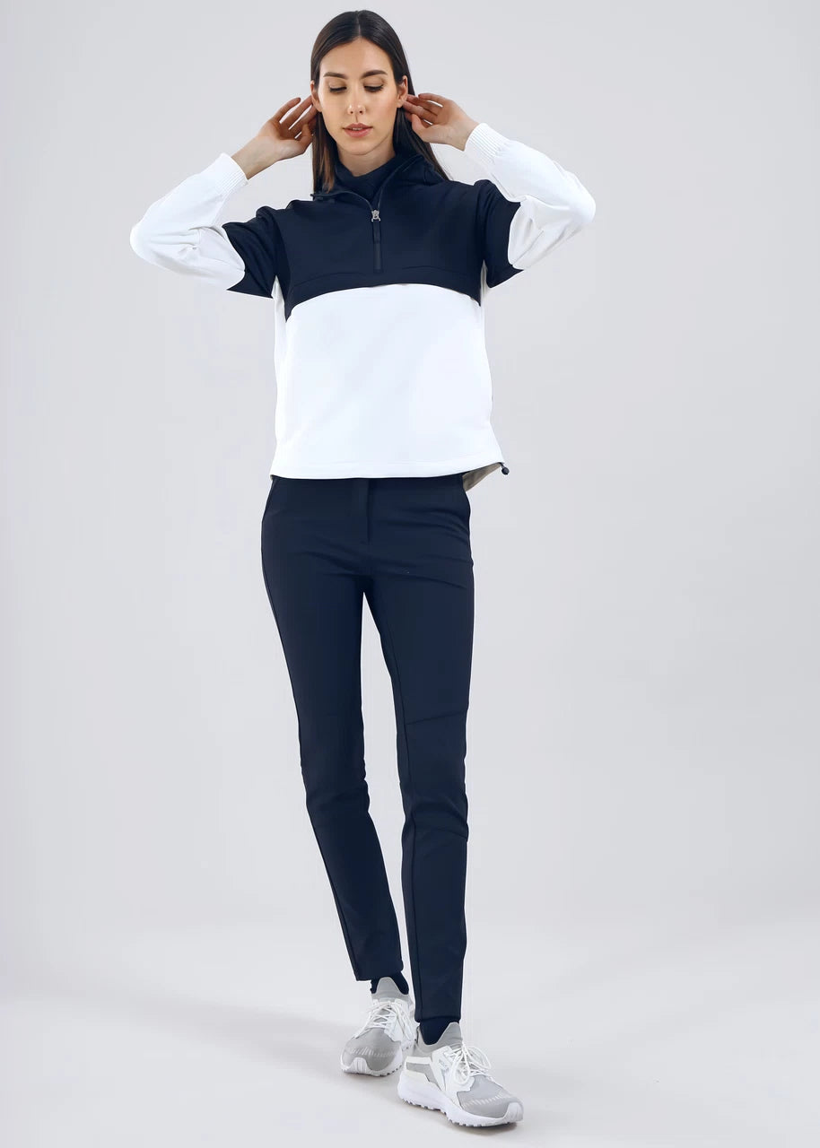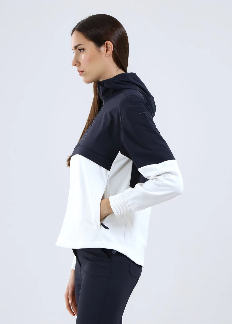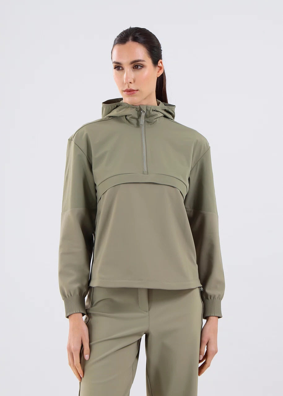 Rockstar es un anorak con media cremallera y capucha, confeccionado en tejido softshell elástico, ideal para todo el año. Incorpora inserciones de nailon para mayor protección contra el viento y el agua, puños ergonómicos y bolsillos funcionales con cremallera. Su corte relajado y el bajo ajustable garantizan confort y libertad de movimiento en cualquier circunstancia.