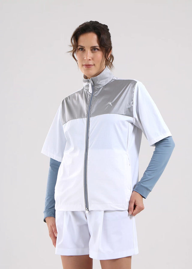 La chaqueta CHAQUETA CHERVO MIRIADE MUJER está diseñada para ofrecer protección contra el viento, la lluvia ligera y el frío en el campo de golf. Fabricada con materiales técnicos que favorecen la transpirabilidad y la libertad de movimiento.