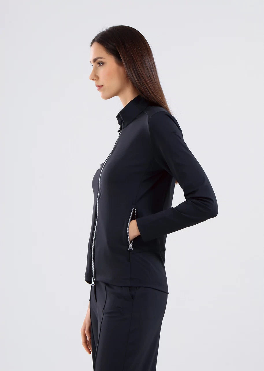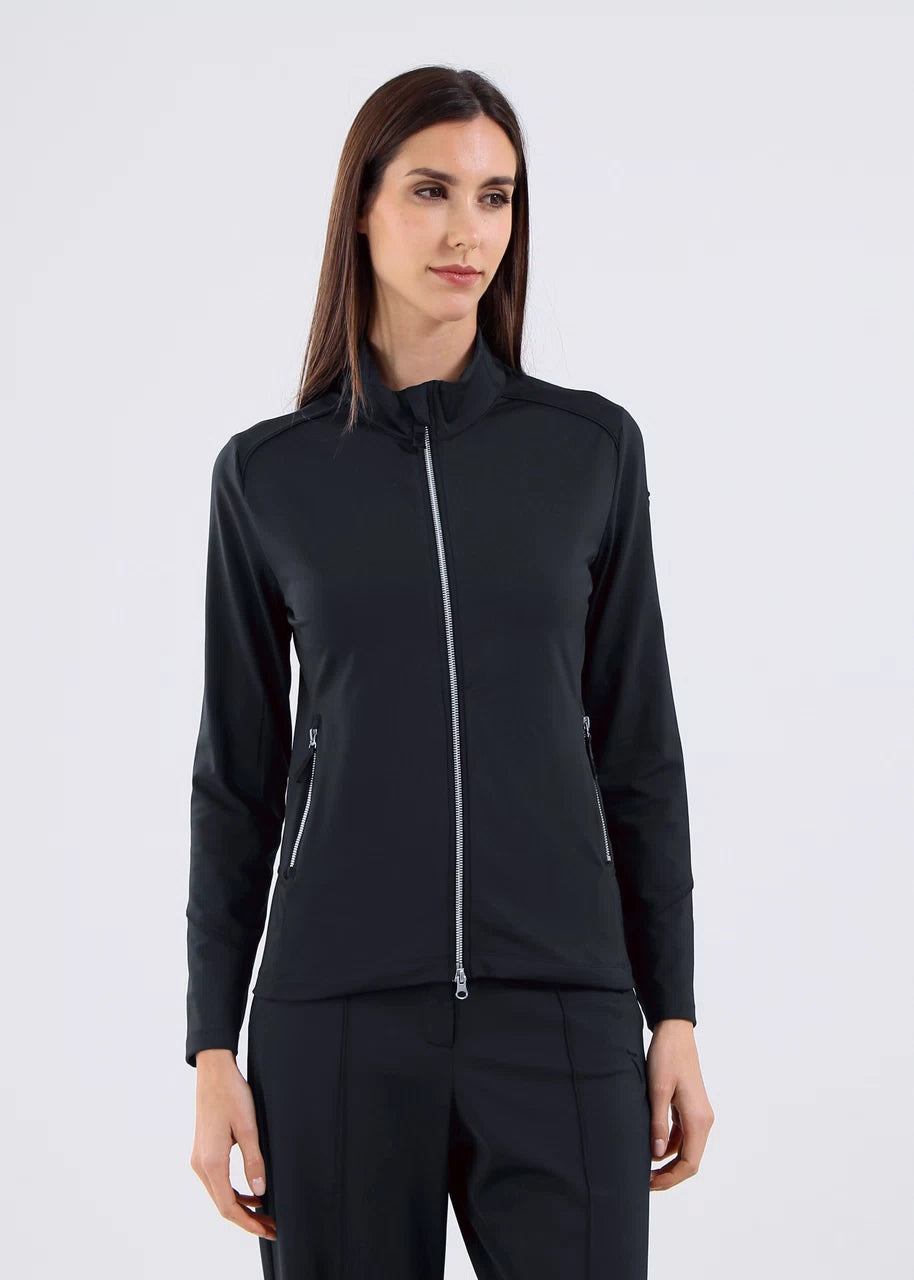 Princesse es una sudadera con cremallera completa, ideal para todas las estaciones. El tejido ligero y suave con interior cepillado ofrece elasticidad y funcionalidad superiores. Los dos bolsillos con cremallera aportan practicidad, y su diseño minimalista la convierte en una prenda versátil dentro y fuera del campo de golf.
