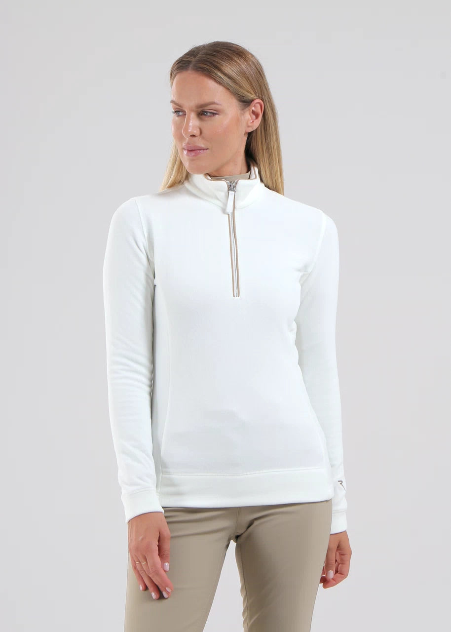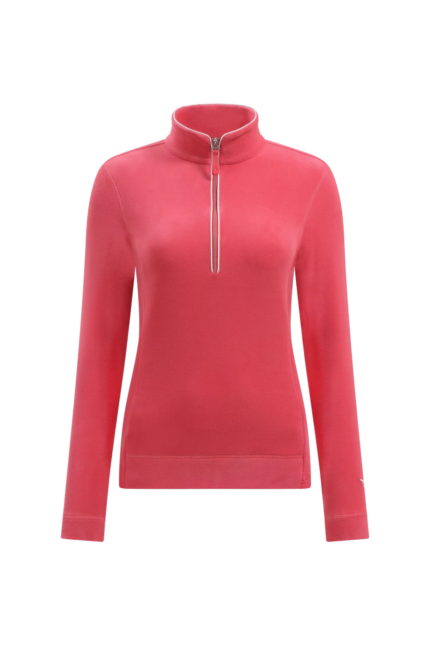 Tentation es una sudadera polar con media cremallera confeccionada en tejido elástico con acabado cepillado y tacto suave. El cuello alto, los ribetes y el diseño deportivo esencial la convierten en una prenda ideal para vestirse a capas cuando hace frío.